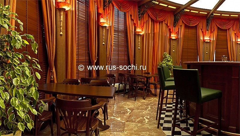 Роскошный курортно-гостиничный комплекс «Русь», расположен в самом сердце Причерноморской Ривьеры, в окружении великолепного субтропического парка площадью более 22 га. Парк не просто красив, а еще и целебен. Растения подобраны так, что в воздухе всегда в изобилии присутствуют фитонциды, обладающие лечебными свойствами. Кипарисы и магнолии, олеандры и деревья гингко – богатая флора (их более 450 видов, из которых 5 занесены в Красную книгу) позволили парку получить статус дендрологического.