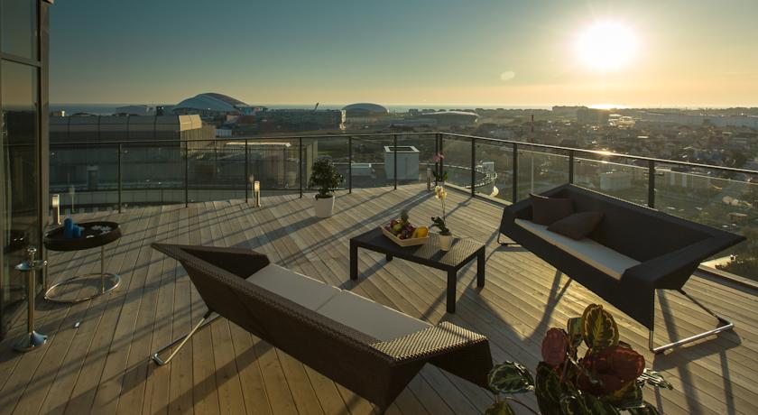 Комплекс, расположенный в Олимпийском Парке, в 9 км от международного аэропорта и 10 минутах ходьбы от скоростного железнодорожного сообщения до Красной Поляны и центра города, предлагает гостям 200 элегантных и просторных номеров с эксклюзивной косметикой ETRO и постельным бельем Frette.