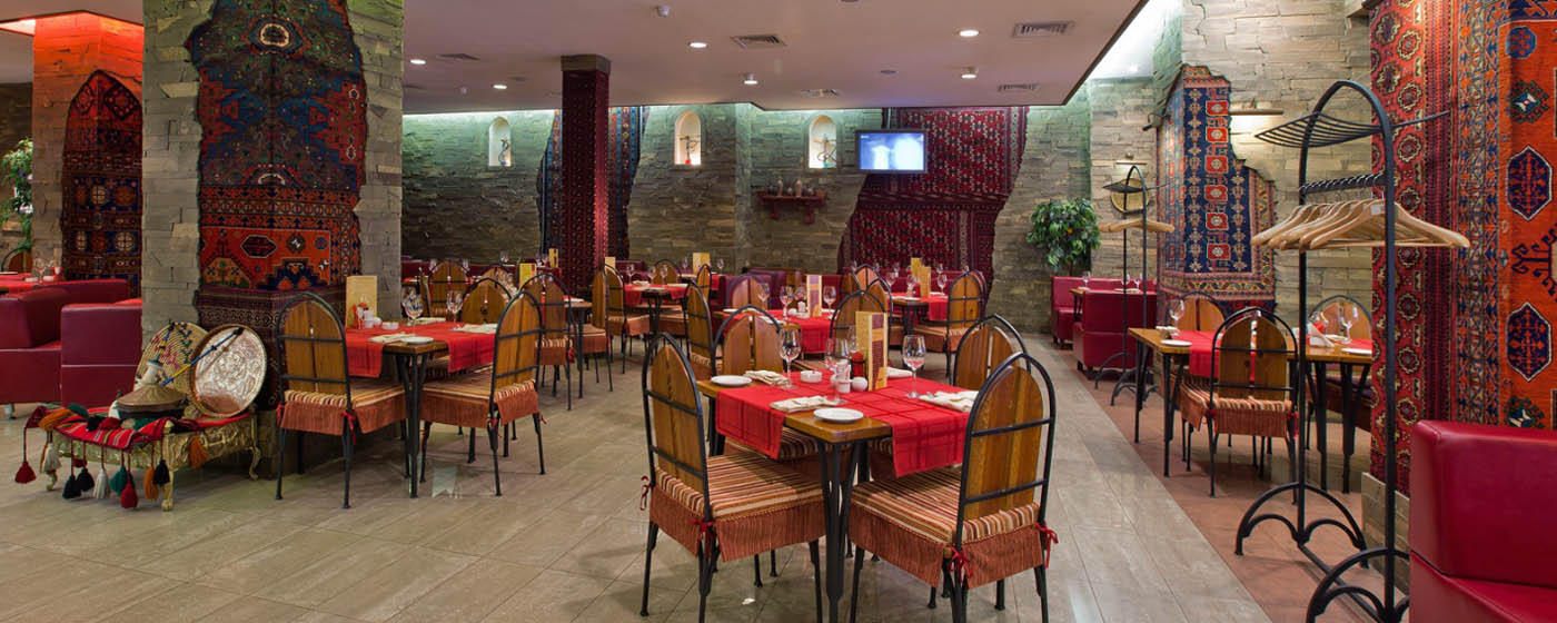 Невычурная роскошь, звуки живой музыки, восточные танцы и вихрь изумительных ароматов позволят вам почувствовать уединение и романтику среди просторных залов.