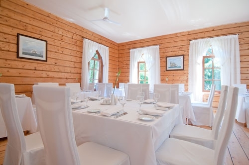 Теплый интерьер, избегающий вычурности и сочетающий в себе одновременно простоту и изящество русских традиций, богатая кухня, основанная на рецептуре петровских ассамблей, разработанная Сергеем Элеменкиным, членом Гильдии поваров Санкт-Петербурга, уютная атмосфера, чистота загородного воздуха и, конечно же, неописуемое изящество фонтанного ансамбля — все это превращает обычную трапезу в незабываемое праздничное действо, а свободно проведенное время — в яркие моменты, о которых всегда так сладко вспоминать.