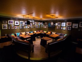 Интерьер-дизайн арт-кафе «Тризет» буквально с самого входа даёт понять – если и есть в Петербурге где скромное и уютное пристанище для творческих натур, отдыхающих за чаркой и скромной закуской от валов вдохновения, то оно находится именно здесь. Большая зона мягких диванов с разноцветными подушками, симпатичные светильники и стены, увешанные фотографиями знаменитостей всех времён и народов – таковы особенности этого чудного места.