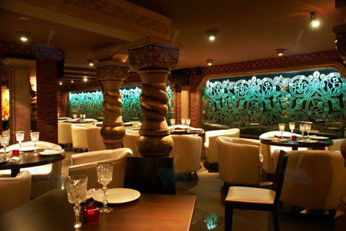 Тройкасоединяет в себе форматы ресторана, кафе и кондитерской. Интерьеры заведения, обновленные в 2008 году, соединяют в себе архитектурную тройку стилей русского модерна, византийской роскоши и минималистично-строгим хай-теком современности. Преобладание же русского духа тут чувствуется во всём, – начиная со встречающей гостей на входе птицей Гамаюн и заканчивая разноцветными стеклянными витражами, на которых отражены сюжеты русских народных сказок.
