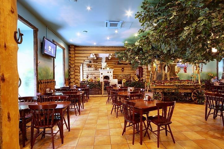 Фаст-фуд с русским духом. В оформлении не поскупились на «национальный элемент» - плетни, горшки, утварь, печи, дрова, бревенчатые стены, чучело медведя. Под сенью дубов в натуральную величину раскинулись телеги со снедью: овощные салаты, соленья, горячие блюда. Подходы к «русскому столу» не ограничены, но за количеством едоков из вашей тарелки тщательно следят красны-девицы – официантки.