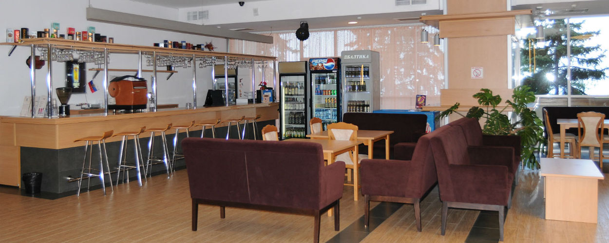 • Ресторан «Панорама» (16 этаж высотного корпуса), бар «Прохлада» (1 этаж 4-х этажного корпуса), бар «Ветерок» на пляже