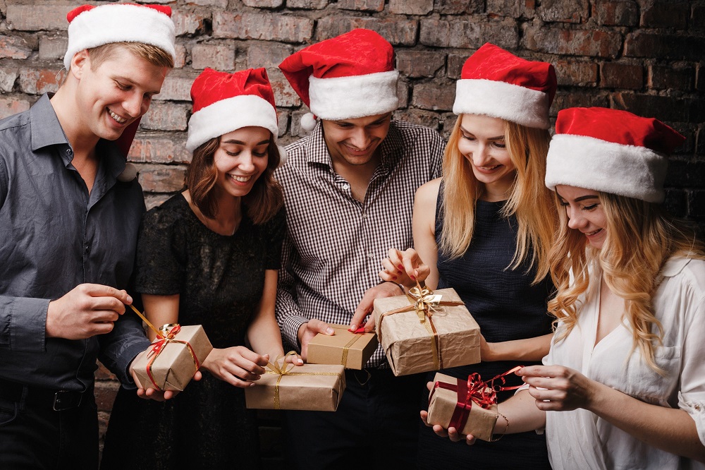 - Подарок каждому коллеге. Поскольку мы говорим о сдруживании и улучшении микроклимата в коллективе, надо чтобы все на празднике получили свою долю внимания и свой подарок. Премия и грамота от руководства — это в приоритете. А вот между собой можно организовать акцию «Тайный Санта» или «Тайный Дед Мороз»: коллеги договариваются между собой о единой сумме подарка, потом каждый тянет листок с именем того, для кого он будет делать подарок, имя надо держать в тайне. На праздник каждый приносит запакованный подарок, на котором указано имя одариваемого. Все подарки помещают в одно место и в определённый момент на празднике вручают каждому гостю — поверьте, взрослые обычно радуются как дети.