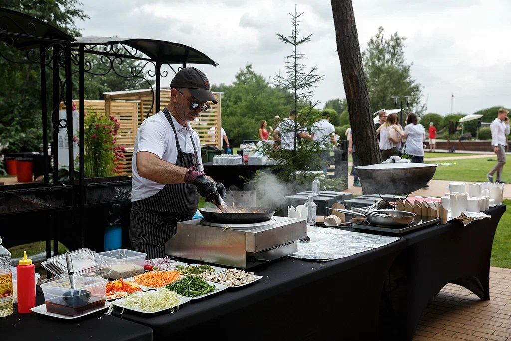 - Фуд-станции вместо классического фуршета