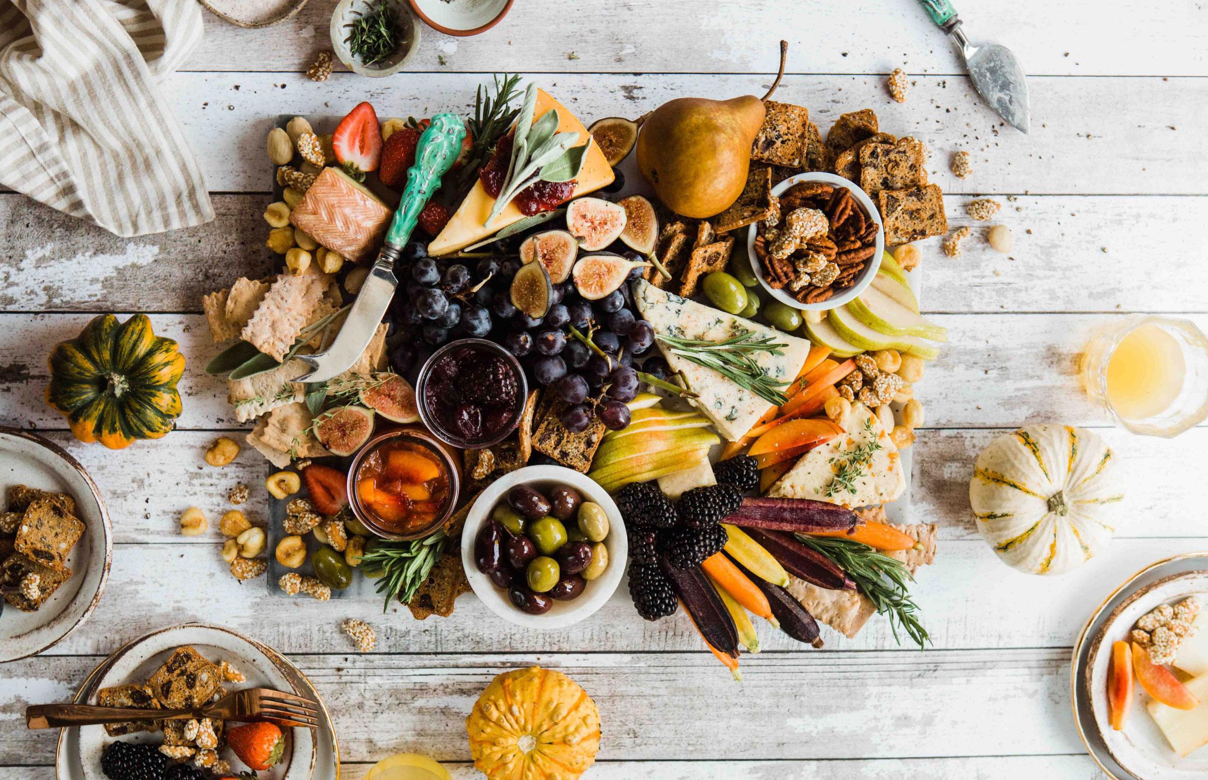 Тыква, грибы, яблоки, груши, виноград, орехи, дичь, сыры с пряностями – всё это создаёт атмосферу осеннего пира. Добавьте капельку фантазии, и гости будут в восторге!
