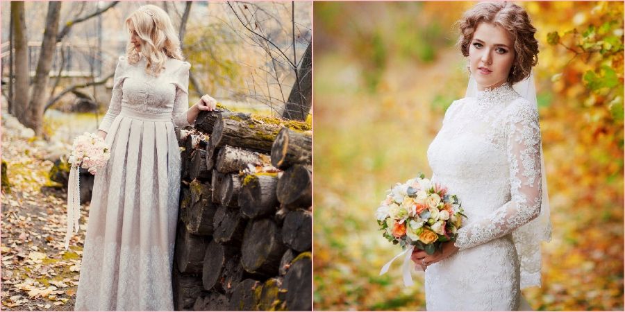 - Для невесты — платья с длинными рукавами, кружевные накидки или элегантные кардиганы. Можно рассмотреть вариант с платьем-трансформером, которое легко сделать короче для удобства.