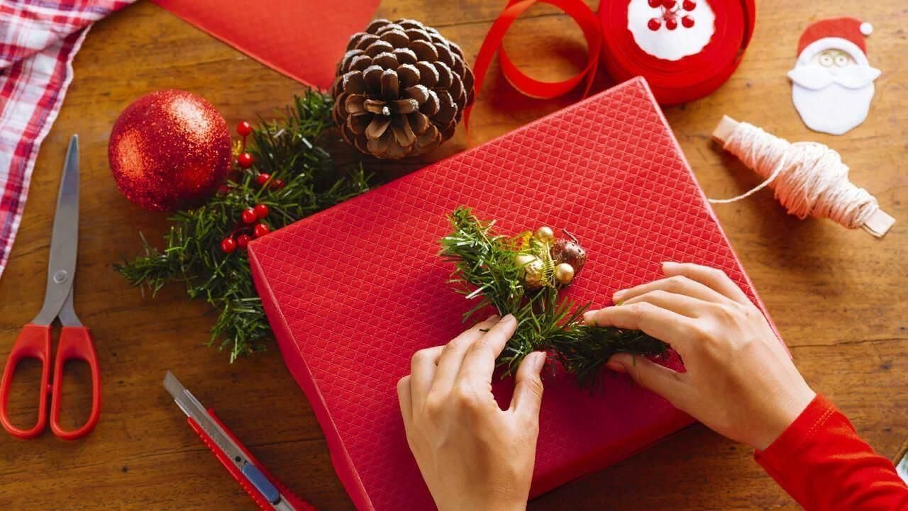 1. Упаковка: используйте красную, золотую или зелёную бумагу. Добавьте ленты и банты