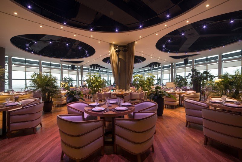 Ресторан Sixty разместился на 62 этаже башни «Федерация». Главная изюминка интерьера площадки — панорамное остекление, из которого открывается потрясающий вид на Москву.