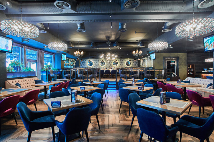 Дорогой интерьер ресторана — это смешение модного лофта со стилем модерн. Эксклюзивная мебель, авторские картины и уникальная инсталляция из старинных музыкальных инструментов. Гости на вашем Дне рождения будут потрясены.