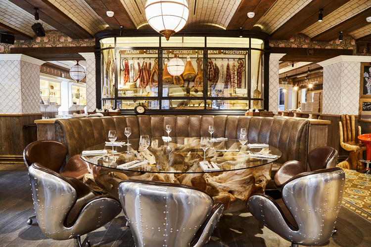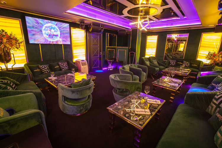Заходя внутрь, попадаешь в самые настоящие джунгли — много зелени, деревьев, статуй животных, среди которых расположены мягкие комфортные зоны, находящиеся и в самой гуще событий - перед диджеем, и более приватные и изолированные. Сердце зала — стойка из натурального оникса, созданная специально для ваших самых дорогих туфель.