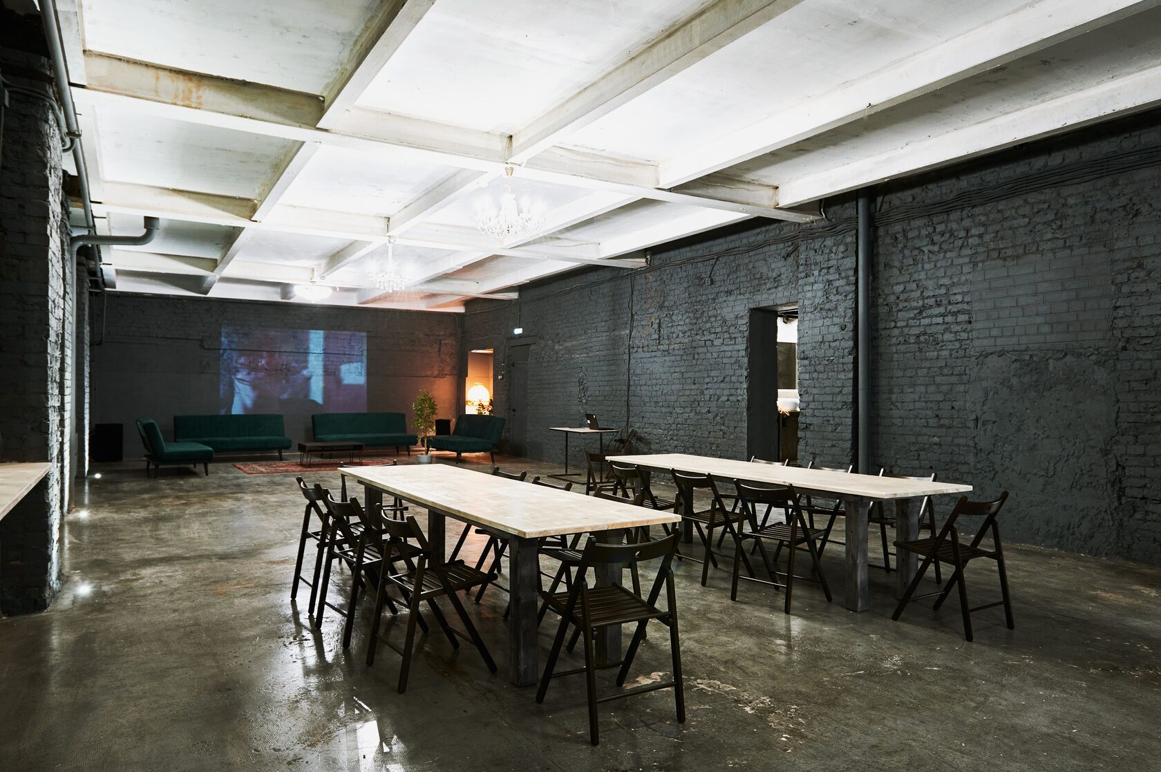 Лофт Эдисон (160 м2) — просторное светлое помещение с огромными окнами в пол. Подходит для дня рождения, вечеринки, проведения семинаров, презентаций, частных праздников и корпоративных вечеринок. Высота потолков — 3,8 м.