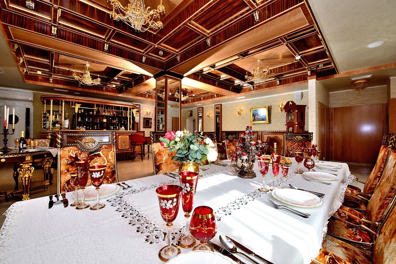 В гостинице Царская деревня для банкетов предлагают 4 банкетных зала разной вместимости и ресторан с двумя залами.