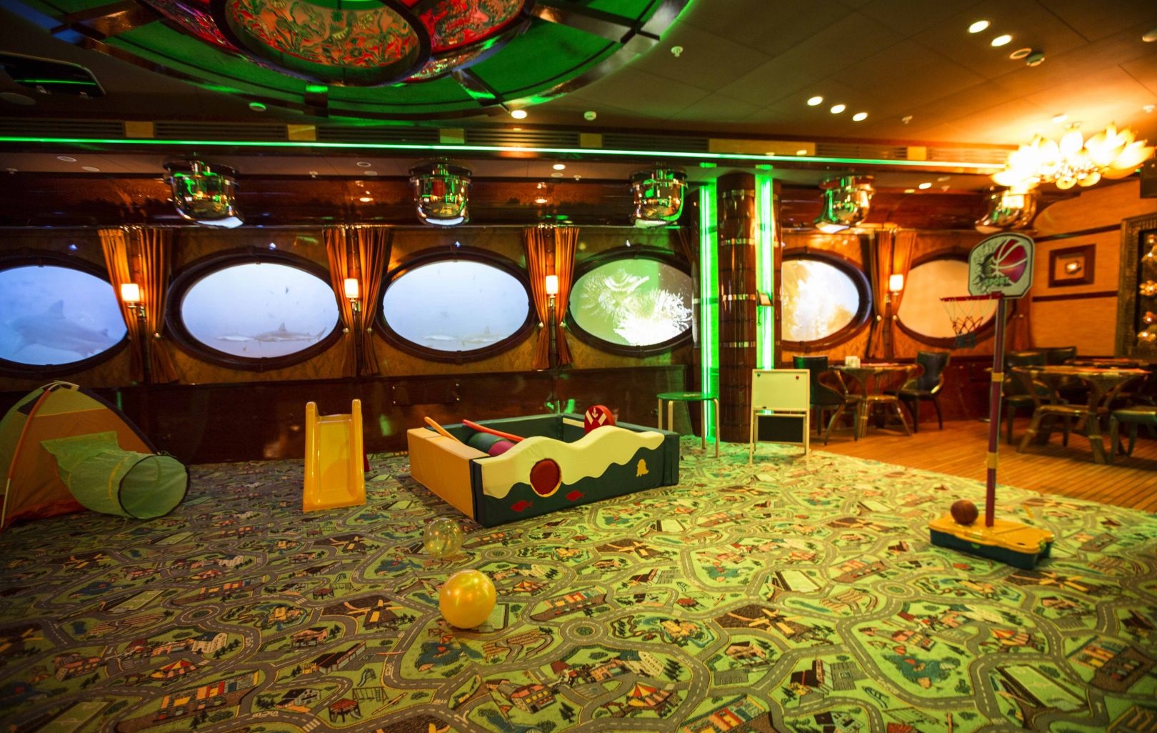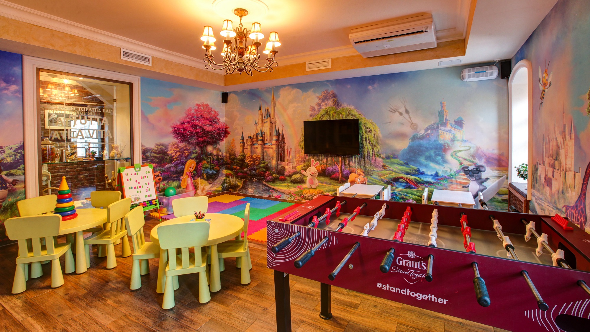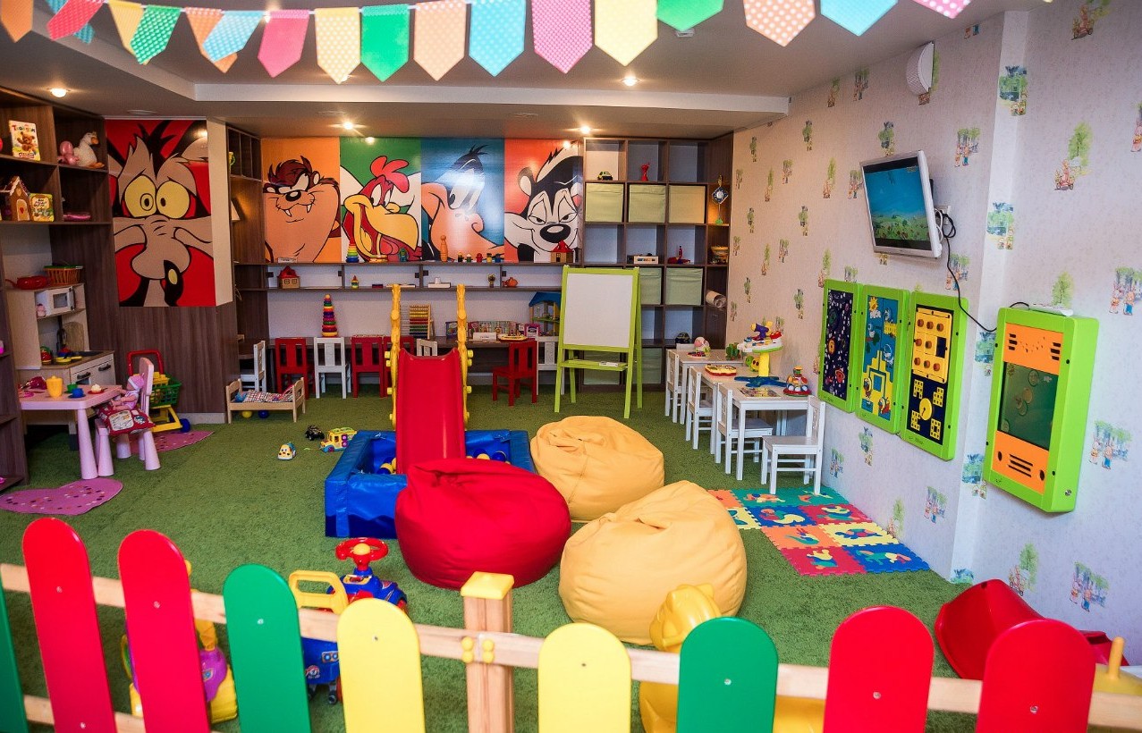 - отдельный Детский зал с хорошо оборудованной ДЕТСКОЙ ИГРОВОЙ КОМНАТОЙ в которой имеется специальный детский туалет. Аниматоры работают в детской комнате каждые выходные с 13.00 до 21.00
