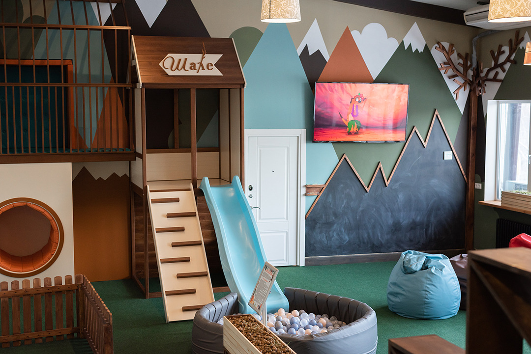 Шале — это уютный ресторан с интерьером в альпийском стиле. Здесь можно приятно провести время в кругу близких друзей и отпраздновать важное событие с родственниками и детьми. Для маленьких гостей в заведении есть просторная игровая комната с игрушками, конструкторами, игровой приставкой, телевизором для просмотра любимых мультиков. По выходным в ресторане для детей проходят кулинарные мастер-классы и различные творческие мастер-классы.