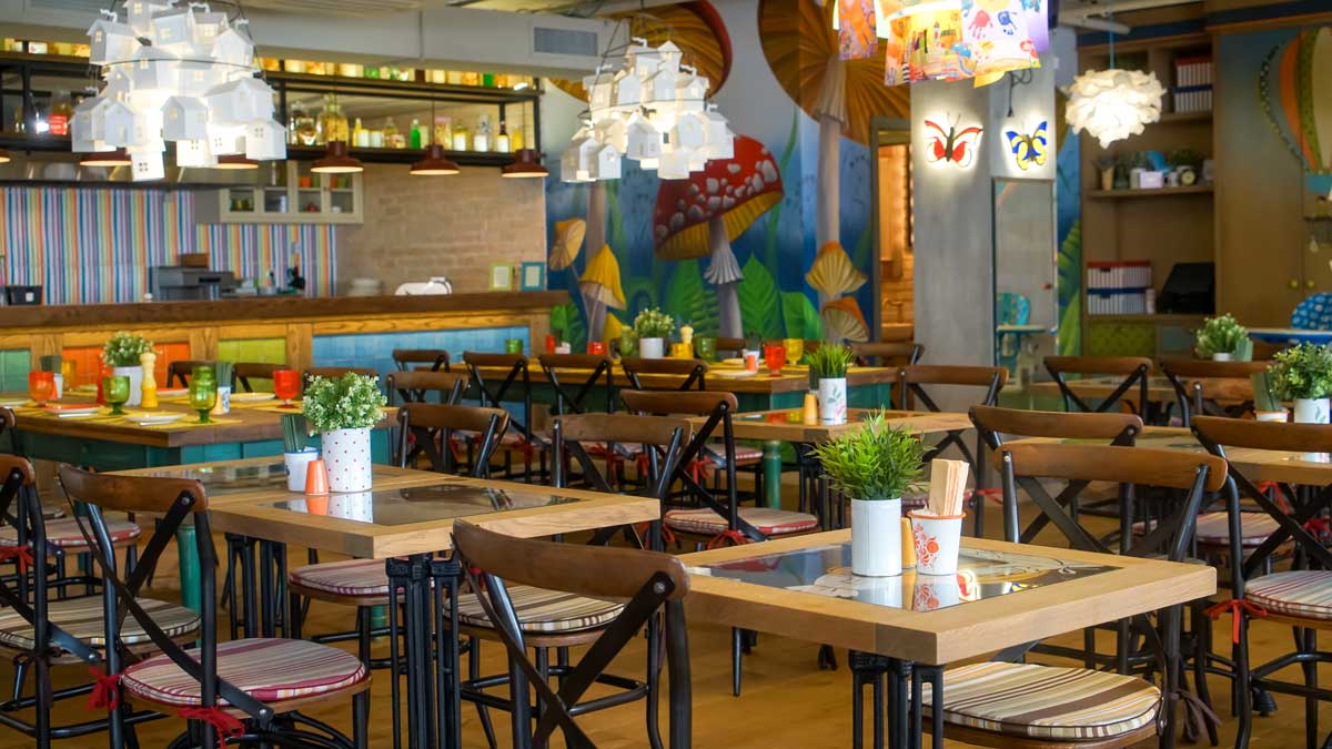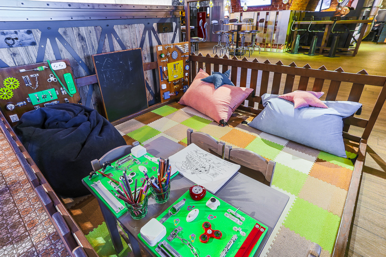В этих заведениях, помимо отдельного детского меню, есть специально оборудованные пространства для детей: отдельные комнаты или отгороженные в основном зале уголки с игрушками, мультфильмами, наборами для рисования, спортивными комплексами со всякими лазилками, бродилками, лабиринтами, канатами, качелями, бассейнами с шариками и др.