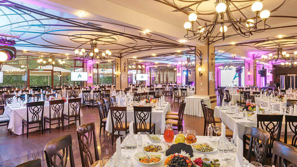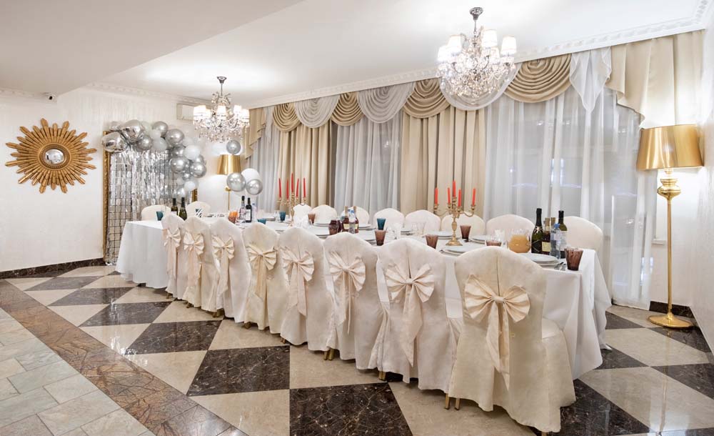 - 13 банкетных залов — от камерных пространств для самых близких до просторных залов на 700 гостей.