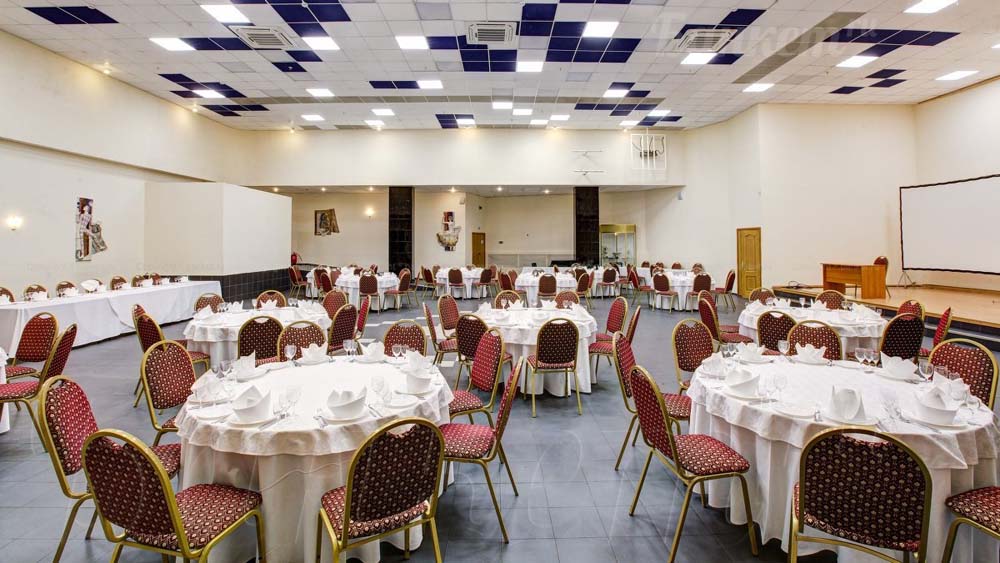 - Два стильных банкетных зала – вместимость до 250 гостей каждый, с изысканным интерьером и продуманным пространством.