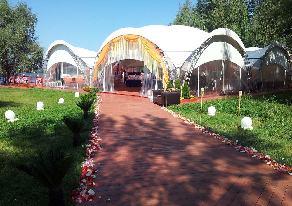 - Простор и эстетика – шатёр 400 кв. м. с элегантной драпировкой и открытая веранда 800 м² прямо у воды.
