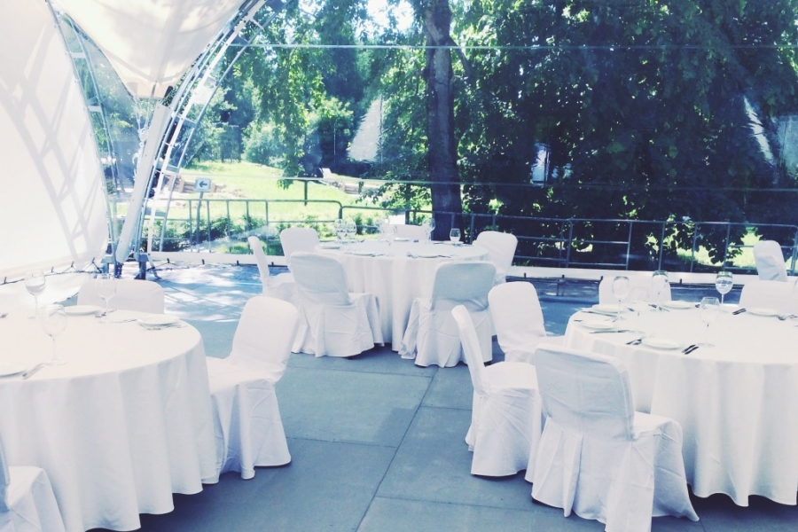 Тент во внутреннем дворе отеля идеально подходит для торжественных мероприятий в теплое время года! Конструкция тента позволяет комфортно расположить банкетную рассадку, сцену и танцпол. Площадь в 340 кв2. позволяет провести как небольшие мероприятия на 30-40 гостей, так и крупные до 130 персон.
