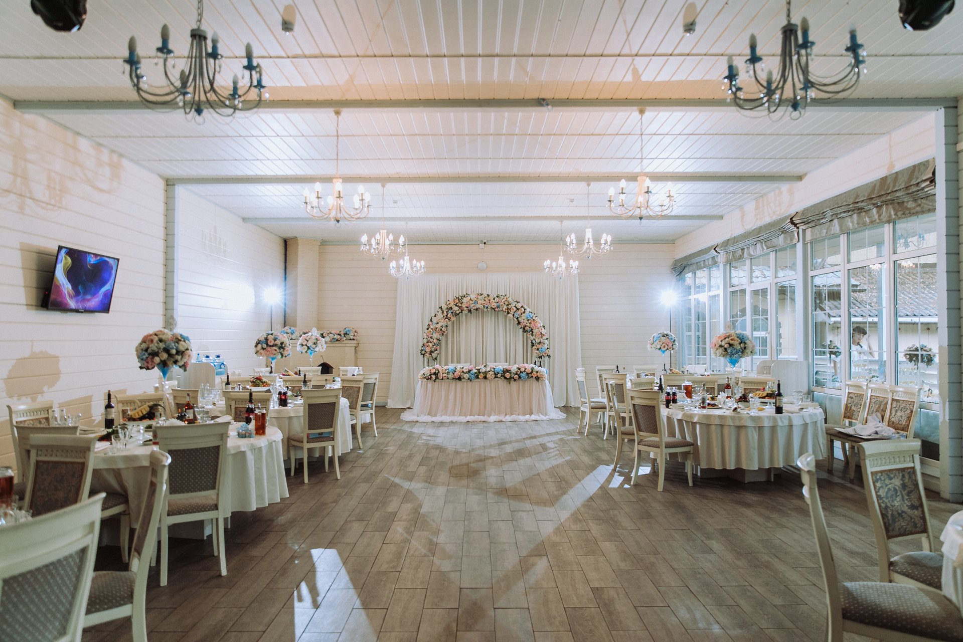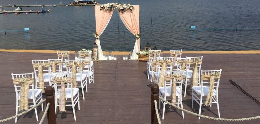 Яхт-клуб Пеликан подходит для проведения свадьбы. Есть возможность выбрать несколько локаций для церемонии выездной регистрации. Для банкета предлагаются на выбор шатёр, веранда и беседки.