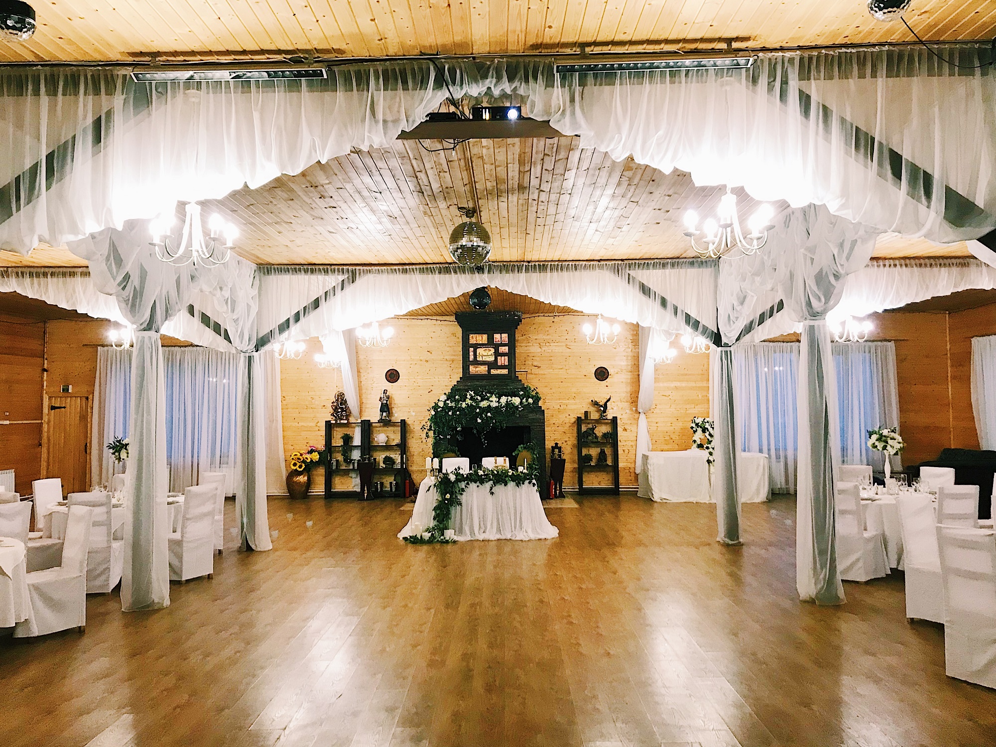 При заказе зала на свадьбу администрация дарит от себя суточное проживание молодоженов в роскошном номере люкс. Для ваших свадебных гостей при заселении будет предоставлена значительная скидка.
