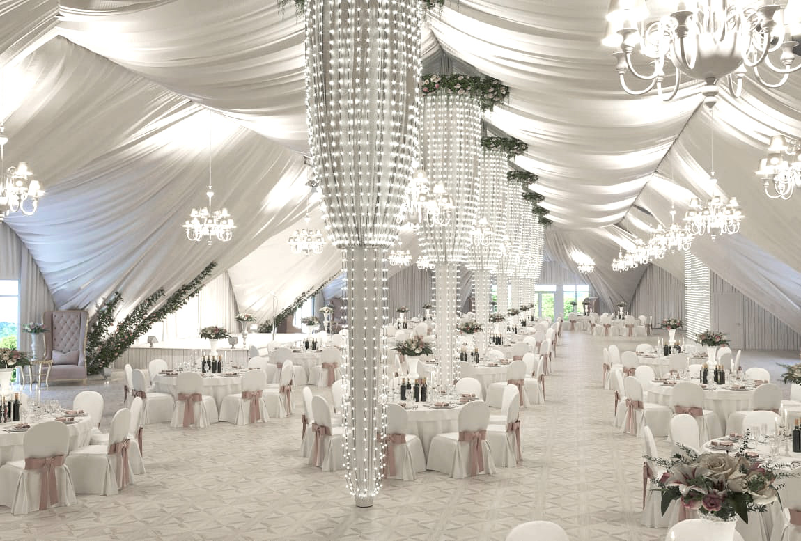Загородный комплекс «Бухта тихая» — это чудесная свадьба, в белоснежном шатре в хвойном лесу.