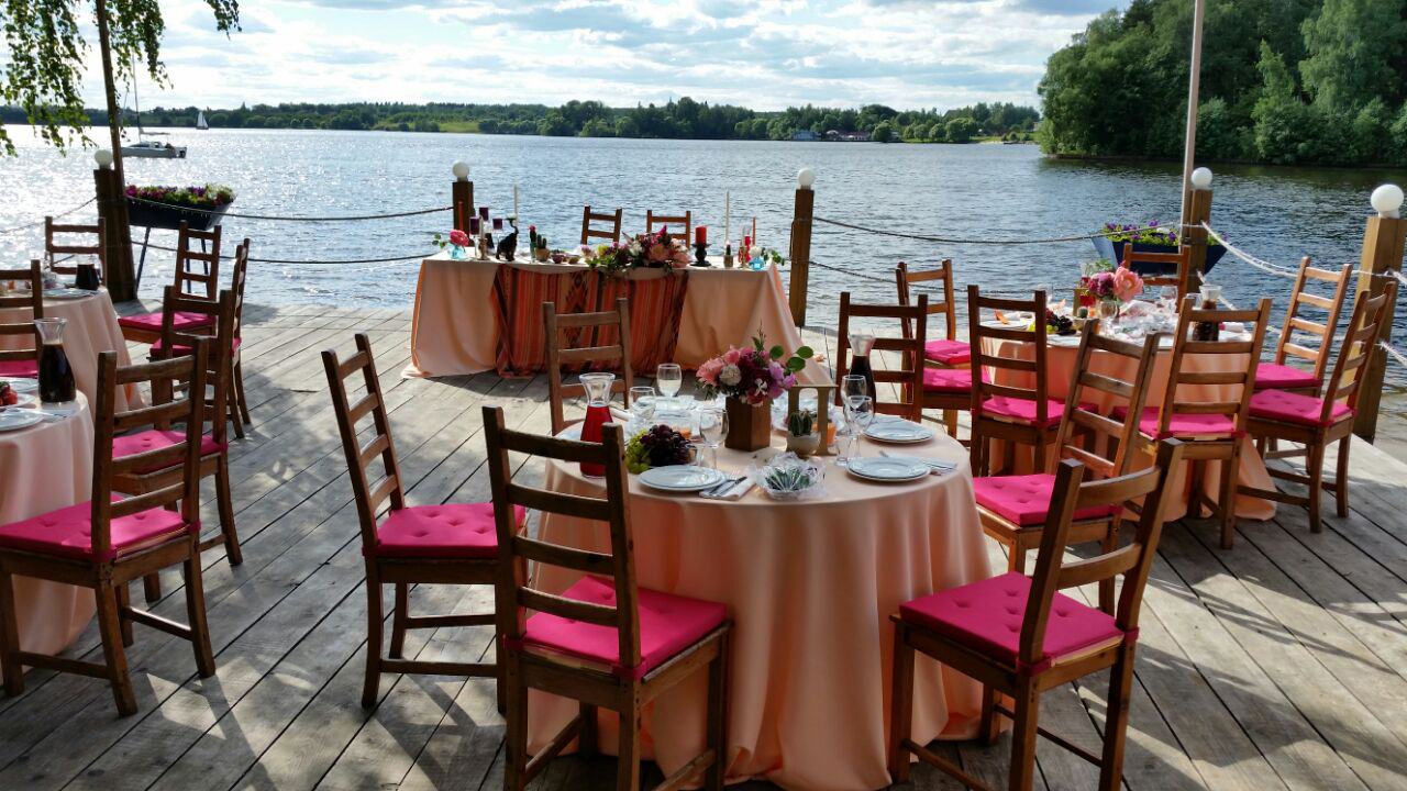 Отель Сенешаль разместился на берегу озера Сенеж. Банкетная команда отеля считает его самым лучшим местом для проведения свадьбы на природе.