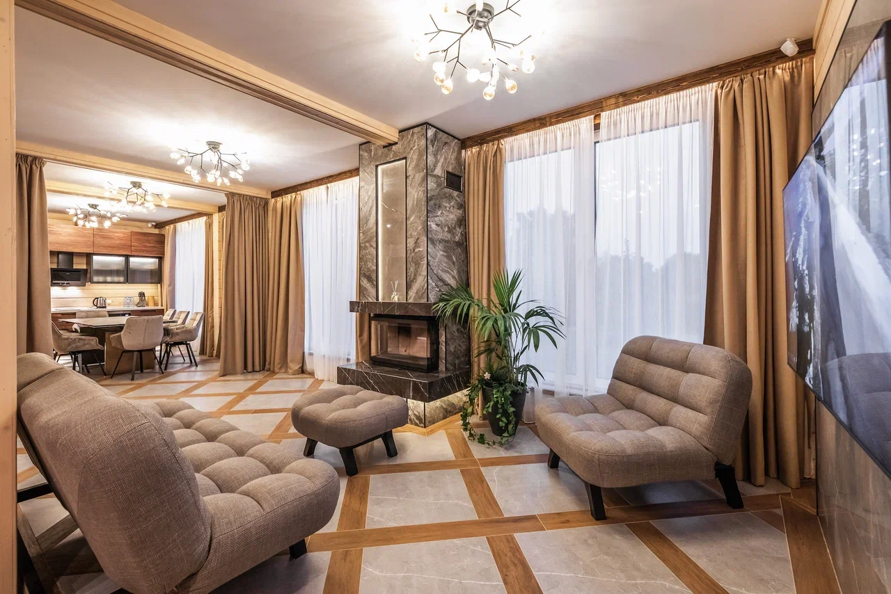 После насыщенного дня Вас ждёт комфортное размещение: от стильных номеров до просторных шале.