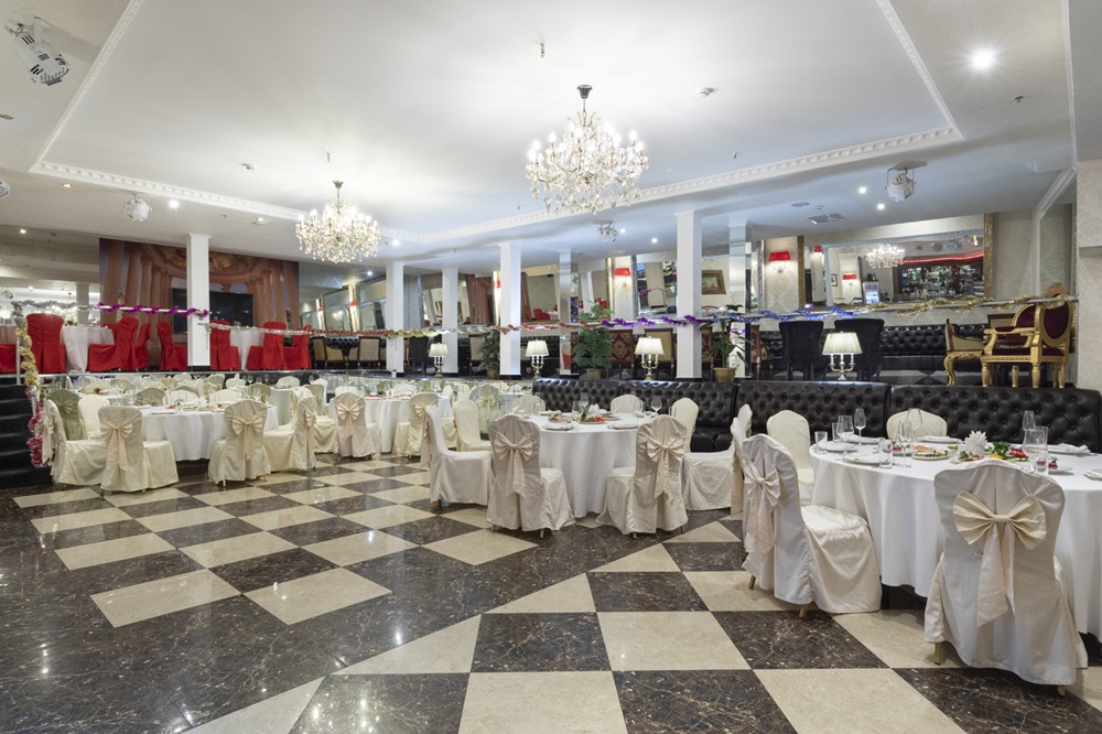 Проведите банкет без хлопот: русская, кавказская и европейская кухня, возможность принести свой алкоголь и никаких ограничений в оформлении. Для молодожёнов — особые условия: первая брачная ночь в подарок и скидки на номера для гостей.