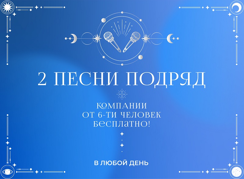 Две песни подряд, компании от 6-ти человек бесплатно в любой день.