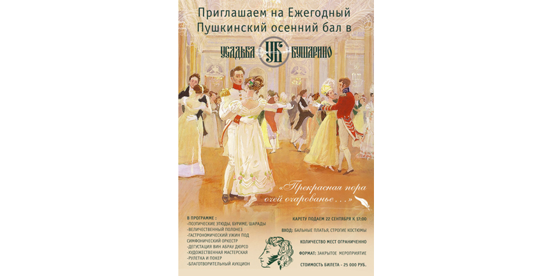 Парк-отель Усадьба Бушарино приглашает гостей на Ежегодный Пушкинский осенний бал!