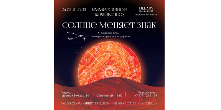 Приходите вместе с друзьями и близкими, чтобы весело провести время, спеть свои любимые песни и отпраздновать приход весны в дружественной и теплой атмосфере «Fillary»!