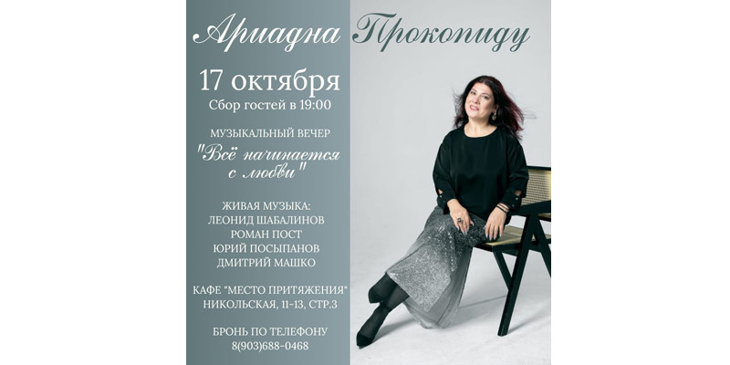 🎙Приглашаем вас 17 октября на музыкальный вечер Ариадны Прокопиду «Всё начинается с любви» в кафе «Место притяжения».