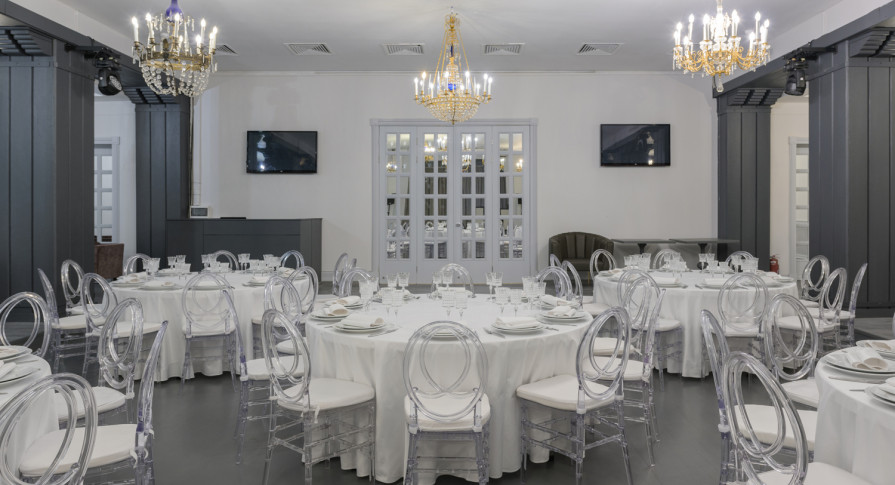 - Аура исключительности. Это эксклюзивная площадка с богатой историей для тех, кто ценит подлинность и статус. Ваше мероприятие пройдёт в уникальном интерьере, где главным украшением, помимо всего прочего, стали 10 антикварных люстр, создающих неповторимую атмосферу роскоши.